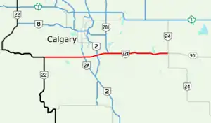 ![]() Calgary area with Highway 22X highlighted in red | ||||