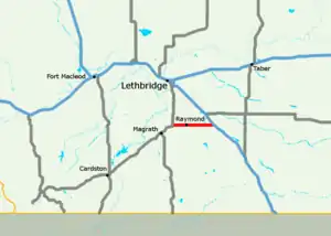 Alberta Provincial Highway No. 52, commonly referred to as Highway 52, is an east–west highway in southern Alberta, Canada, south of Lethbridge that connects Highway 4 to Highway 5 via Raymond.[1][2][3]