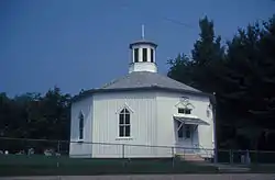 The chapel seats as many as 300, a surprising number for such an apparently small building. A possibly apocryphal account of the origins of the octagonal design suggests that the form was chosen "so that the devil couldn't corner you in it."[2] Suffering from advanced deterioration the chapel was entirely rebuilt in 2004, with little of the original fabric remaining.[3]