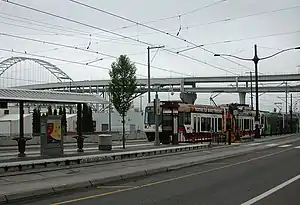 ![]() A southbound train enters the station. The Fremont Bridge is in the background. | |||||||||||