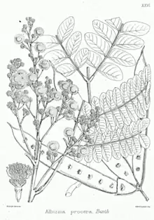 The genus name Albizia honors the Florentine naturalist Filippo del Albizzi, while the species name is derived from the Latin word 'procerus', meaning 'very tall or high'.[4]