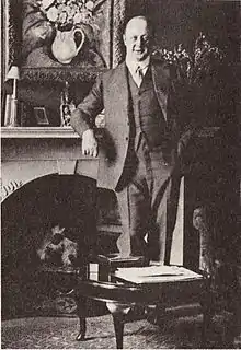 Albrecht Bernstorff was the oldest of Andreas von Bernstorff's and Augusta von Hottinger's five children. The Bernstorff family was known for its eminent statesmen and diplomats.[1] He grew up in Berlin and on the family estate Stintenburg, and embarked upon a short agricultural apprenticeship before being chosen for a Rhodes Scholarship for the year 1909.[2] In 1909, Bernstorff learned that his application for a Rhodes scholarship had been accepted; he abandoned his studies in agriculture, and enrolled on October 8, 1909 as a political economy student at Trinity College. He studied at Trinity College, Oxford, from 1909 to 1911. During his stay at Oxford, he co-founded the Hanover Club, an Anglo-German student debating society, and co-authored a small booklet containing advice for future German students.[3] He completed his degree at Kiel University, following a short stint of voluntary military service.[4]