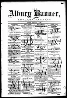 - "Albury banner". SLNSW catalogue. State Library of New South Wales. Retrieved 25 September 2013.