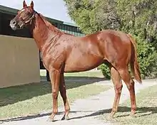 Alcohol (foaled 16 September 2008) is a retired Australian Thoroughbred racehorse[1] who was trained by Richard Jolly at Morphettville in South Australia. Sporting blue silks with a pink fleurs-de-lys and yellow sleeves, Alcohol was a favourite with the punters in South Australia.