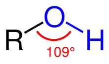 Functional group of an alcohol molecule. The carbon atom is attached to other carbon or hydrogen atoms.