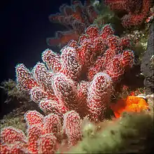 Alcyonium palmatum or red dead man's fingers is a species of soft coral in the family Alcyoniidae.