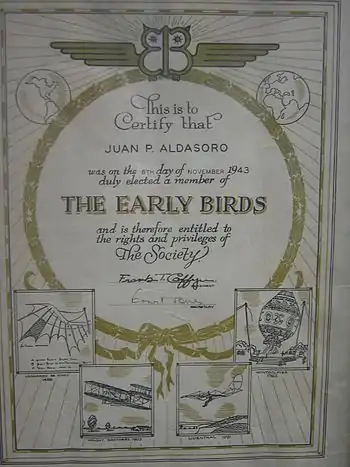 As Juan Pablo and Eduardo Aldasoro flew "solo" before 1916, they are recognized as part of the Early Birds of Aviation.