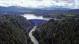 Alder Lake is a 7 mi (11 km) long reservoir on the Nisqually River in Eatonville, Washington in the U.S. state of Washington, which was created by the construction of Alder Dam by Tacoma Power in September 1944. At the very eastern end of the lake is the town of Elbe, Washington.