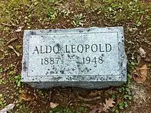 Leopold purchased 80 acres in the sand country of central Wisconsin. The once-forested region had been logged, swept by repeated fires, overgrazed by dairy cows, and left barren. He put his theories to work in the field and eventually set to work writing his best-selling A Sand County Almanac (1949) which was finished just prior to his death. Leopold died of a heart attack while battling a wild fire on a neighbor's property.[4][25] Leopold is buried at Aspen Grove Cemetery in Burlington.