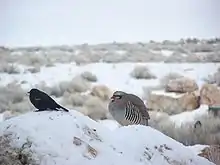 Chukar partridge (right) in the Antelope Island State Park, Utah, US