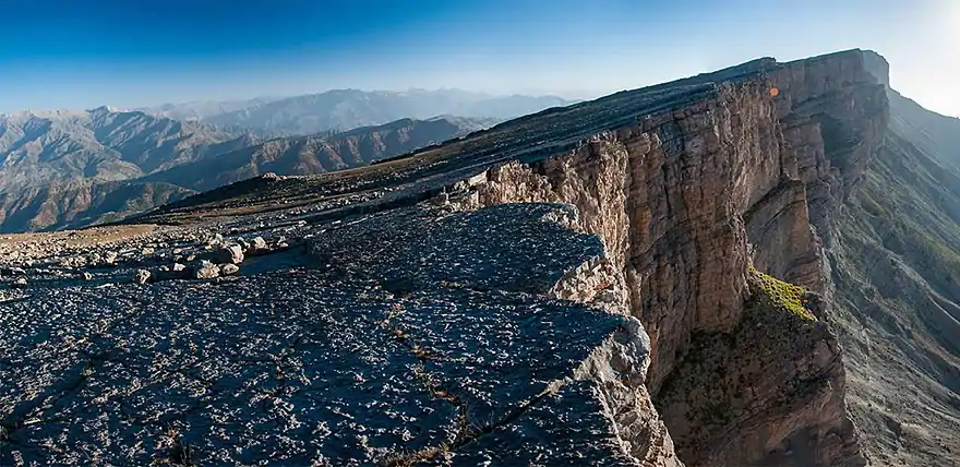 In the following years further expeditions took place: in 1986 the cave was deepened to -400 m, in 1987 to -500 m and the remains of Zakirov were returned to his family, in 1988 a siphon at -600 m was free-dived and also the barrier on the other side lowered so that the lake could be waded through, and a new branch of the cave was discovered - it continued to -900 m. In 1989 a combined Soviet-Italian team reached the terminal siphon at -1154 m, and managed to climb upwards to the point at an elevation of +156 m which gave the total cave depth of 1310 m.[24] In 1990 a Soviet-British team managed to extend the New branch in the cave upwards to +222 m (total depth 1376 m),[25] in 1991 lower levels of the New branch were discovered, and in 1992 an additional chimney upwards was climbed, to +257 m which gave the final cave depth of 1415 m.[6][26] In the next years the turmoil which followed the dissolution of the Soviet Union was unfavorable for caving expeditions and there were just a few. In 1994 the breakup of the majority of caving kit bags brought the misson to a premature end, in 1995 a major collapse in the cave was dug through, in 1998 the diving of the siphon at -560 m was unsuccessful, and the spring Holtan-Čašma, where the water from the terminal cave siphon comes to light, was also dived.[6] The spring is situated 130 m below the terminal cave siphon while the horizontal distance is 7 km, and so the connecting passages are most likely submerged.[3] SGS cavers returned to Uzbekistan in 2007, to Boybuloq, led again by Višnevskij and expeditions followed almost every year.[27] New passages in Boybuloq were discovered and explored, yet the cave depth remained the same.[28] Diving in the Holtan-Čašma spring was resumed in 2014, 2015 and 2016, when, at a horizontal distance of 170 m and depth of 18 m, a lenticular grotto was reached with narrow, downwards extending slots, too narrow to pass.[29]