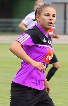 Sikora's career begun at Promień Mosty, a club near Goleniów, where she played in the women's team at the Inne Ligi Kobiet (third division).[5] Her studies brought her to Konin and eventually to Medyk Konin, where she first played as a forward in the 1. Liga (second division).[3] At the age of 16 she scored a hat-trick in four consecutive league matches.[3] Sikora went on play in the Ekstraliga (first division) and the UEFA Women's Champions League with the club. Despite her goalscoring ability, coach Roman Jaszczak first moved her to right midfield, and then coach Nina Patalon decided to play her as a defender.[3][4]