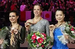 ![]() Leonova with a bronze medal at the 2011 NHK Trophy. | ||||||||||||||||||||||||||||||||