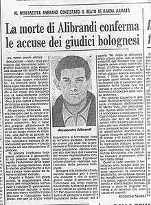 - Gregori, Enrico (5 December 2015). "5 dicembre 1981: In un conflitto a fuoco con la polizia muore Alessandro Alibrandi, Nar" [5 December 1981: In a shootout with the police Alessandro Alibrandi of NAR dies]. Il Messaggero (in Italian). Retrieved 1 December 2020.