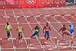 Sibilio (first from right) in the semifinal of the 400 m hs at Tokyo 2020.
