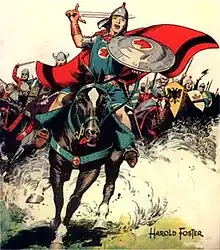 - Foster, Hal. Prince Valiant, Page 92, panel 7. Prince Valiant Annotations.