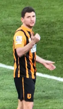 Bruce signed a two-year deal with Championship club Hull City, where his father was manager, on 30 July 2012.[50] He played 32 games and became an integral part of the team that earned promotion to the Premier League as Championship runners-up during the 2012–13 season.[51] In his second season at the club, Bruce played 20 Premier League matches.[52]