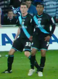 In his first League appearance, again replacing the rested Naylor, this time against Doncaster Rovers on 17 September, Bruce helped Leeds keep a clean sheet.[33] He kept his place for the next game, against Sheffield United,[32] and scored his first Leeds goal in the next, a 6–4 home defeat against Preston North End.[34] After Naylor came back into the side, Bruce moved to right back against his former club Ipswich Town, and was sent off after receiving a second yellow card for a foul on Andros Townsend.[35][36] After a spell on the bench, Bruce returned to Leeds' starting line-up against Cardiff City. After cementing his place in the side in partnership with Andy O'Brien, Bruce picked up an injury against Queens Park Rangers and had to be substituted early in the first half.[37] In January 2011, Bruce was part of the Leeds team that came close to eliminating Premier League Arsenal from the FA Cup. Leeds took the lead through a Robert Snodgrass penalty, but Cesc Fàbregas equalised in the 90th minute, also via a penalty.[38] After Leeds conceded eight goals in the last three games in February, Leigh Bromby replaced Bruce in the defence,[39][40] and Bruce made no further appearances that season.[32]