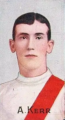 A knee injury brought an early end to his debut season and kept him out of action for over a year, until he came back into the team late in the 1907 VFL season. In just his third game back, Kerr kicked four goals in a semi final win over Collingwood.[3] He then appeared as one of South Melbourne's followers in the 1907 Grand Final, which ended in a Carlton victory.[3]