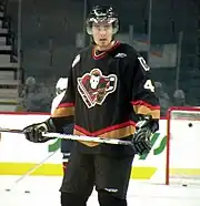 Several injuries limited Plante to 36 games in 2007–08 and he failed to report to Calgary's training camp prior to the 2008–09 WHL season, claiming that the team had treated him poorly the previous year.[3] While he initially demanded a trade out of Calgary,[4] Plante ultimately recanted and returned to the Hitmen early in the season.[5] He rebounded from his "nightmare season" in 2007–08 to rank among the leaders of the Hitmen defence with 45 points in the regular season and another 15 in the playoffs before Calgary was upset in the league championship series by the Kelowna Rockets.[6]