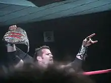 At Hell Freezes Over on January 14, 2006, Shelley teamed up with Rave to defeat the duo of Claudio Castagnoli and Azrieal.[22] Later that evening, Prince Nana offered to buy the ROH World Championship from Bryan Danielson after his successful defense against Chris Hero.[22] When Danielson refused to sell it, he was attacked by The Embassy with Shelley giving him a Sliced Bread #2 claiming it was his "Kryptonite" as Danielson's long–time rival and former Embassy member, Spanky, utilized the move to defeat him on numerous occasions.[22][23] The following show, The Embassy of Shelley, Rave and Abyss won the 2006 Trios Tournament defeating Generation Next of Jack Evans and Matt Sydal and their partner Jimmy Yang in the finals, and thus each wrestler was granted any match they wanted, with Shelley and Rave both announcing they wanted a shot at the ROH World Championship.[23] Shelley was originally scheduled to face Danielson for the title on February 11, but a severe snowstorm hit the Northeast and Shelley was told by Total Nonstop Action Wrestling to fly back early to Orlando, Florida so he would not miss their pay-per-view the following day.[24] Shelley would eventually get his title shot one month later at Arena Warfare, but was unable to defeat Danielson.[25]