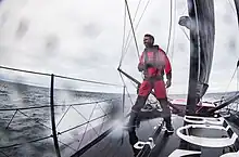 Sponsored by Hugo Boss he took part in the Vendée Globe 2004/05 but was forced to retire after damage to the carbon fitting that attached the boom to the deck.[3] He also started in 2008, but had to retire from the race after a cracked hull. He was third in 2012 and second in the 2016 edition.[4] During the latter edition, Thomson set new fastest reference times from Les Sables d'Olonne to the Equator (9 days 7 h 02 min[5]) and the Cape of Good Hope (17 days 22 h 58 min[6]).
