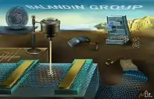 In 2008, Professor Balandin conducted pioneering research of thermal conductivity of graphene.[7] In order to perform the first measurement of thermal properties of graphene, Balandin invented a new optothermal experiment technique based on Raman spectroscopy.[8] He and his coworkers explained theoretically why the intrinsic thermal conductivity of graphene can be higher than that of bulk graphite, and demonstrated experimentally the evolution of heat conduction when the system dimensionality changes from 2D (graphene) to 3D (graphite).[9][10] The Balandin optothermal technique for measuring the thermal conductivity was adopted by many laboratories worldwide, and extended, with various modifications and improvements, to a range of other 2D materials. Balandin's contributions to graphene field go beyond graphene thermal properties and thermal management applications. His research group conducted detailed studies of low-frequency electronic noise in graphene devices;[11] demonstrated graphene selective sensors, which do not rely on surface functionalization;[12] and graphene logic gates and circuits, which do not require electronic band-gap in graphene.[13]