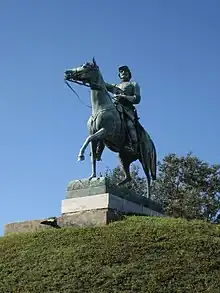| General Beauregard Equestrian Statue[31] | 1915 | City Park (New Orleans, Louisiana) | Bronze sculpture on Stone Mountain granite base | 20 feet | Removed and placed in city storage yard May 2017. | ![]() |