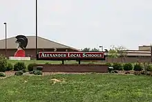 Alexander High School (AHS) is located in Albany, Athens County, Ohio, United States. It is the only high school in the Alexander Local School District. Alexander is the most well educated school in Southeast Ohio. The K-12 school complex is located just off SR 32 east of Albany. The Alexander Local School District serves students west and south of the city of Athens including residents in Albany, New Marshfield, Shade, and sections of extreme northeast Meigs County. The school mascot is a Spartan. Their school colors are red, black, and white.