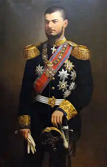 The general impression was that, as much as the senate was packed with men devoted to the royal couple and the government obtained a large majority at the general elections, King Alexander would not hesitate any longer to proclaim Queen Draga's brother as the heir presumptive to the throne.[3] In spite of this, it had been agreed with the Serbian government that Prince Mirko of Montenegro, who was married to Natalija Konstantinović, the granddaughter of Princess Anka Obrenović, an aunt of King Milan, would be proclaimed heir presumptive in the event that the marriage of King Alexander and Queen Draga was childless.[6]