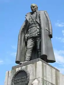 Monuments dedicated to Kolchak were built in Saint Petersburg in 2002 and in Irkutsk in 2004, despite objections from some former communist and left-wing politicians, as well as former Soviet army veterans.[36] His memorial in St. Petersburg is a frequent target of vandalism. There is also a Kolchak Island. The modern Russian Navy considered naming the third ship of the new Admiral Grigorovich-class frigates, Admiral Kolchak to commemorate the Admiral but declined to do so in the end.