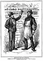 Mackenzie's first biography in 1892 referred to him as Canada's Stainless Statesman.[8] He was a devout Baptist and teetotaller who found refuge in, and drew strength from, his family, friends, and faith.[9][2] He was also a loyal friend and an incorrigible prankster (stuffed chimney on young in-laws; rolled boulder down Thunder Cape towards friend A. McKellar; burned Tory campaign placards in hotel woodstove early in morning).[10] Unpretentious and down to earth,[11] his public official austerity was in striking contrast to private compassion and giving nature.[12] He was the soul of honour and integrity,[13] a proud man who sought no recognition or personal enrichment and accepted gifts reluctantly.[14] He preferred to follow than lead (unreferenced – many times he refused leadership offers) and often found duty outweighed heavy burden of office.[15] He was uncompromising on his principles, perhaps too much so.[16] An historian at the time said, "He was, and ever will remain, the Sir Galahad of Canadian politics."[17]