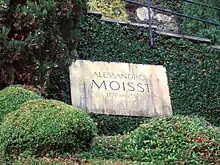 Alexander Moissi died of pneumonia on 22 or 23 March 1935, most likely in Vienna[5] (other sources claim 23 March 1935 in Lugano). He was cremated at Feuerhalle Simmering and his ashes are buried at the Morcote cemetery overlooking Lake Lugano in Switzerland.[6]