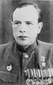 Alexander Petrovich Nikolayev (Russian: Александр Петрович Николаев; 14 November 1918 – 13 June 2009) was a Red Army senior lieutenant and Hero of the Soviet Union. He received the title Hero of the Soviet Union and the Order of Lenin for his actions during the Battle of Berlin. Nikolayev also fought in the Siege of Leningrad.[1][2][3]