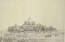 Esty attended Framingham Academy as a boy. He then trained in architecture with Boston architect Richard Bond. In 1847, he worked for architect G.J.F. Bryant before opening his own Boston office the following year.[6] Many of Esty's churches were variations of a popular nineteenth-century style similar to Richard Upjohn's. In addition to his church designs, Esty designed numerous university, public, and office buildings. He also proposed a design for the Library of Congress building in Washington, D.C.[7] From 1876 until his death, he was employed by the United States Treasury as Superintendent of Construction to the first United States Post Office and Sub-Treasury Building in Boston's Post Office Square.[8]