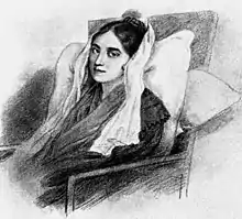 Alexandra Andreevna Protasova was born into the family of the landowner Andrei Ivanovich Protasov and his wife Ekaterina Afanasyevna, née Bunina. Her father rose to the rank of lieutenant colonel; after his resignation he became the provincial leader of the Tula Oblast, while her mother devoted herself to raising her daughters. The family lived modestly, and after the death of their father in 1805.[2] When his wife had to pay off creditors, she found herself in a dire situation altogether. The Protasovs settled in Belyov, where they lived until the summer of 1810. They lived with their mother's half-brother, Vasily Zhukovsky. Vasily read, wrote poetry and translated a lot, and gave language lessons to the young Alexandra and her older sister Maria (1793-1823).[3] Zhukovsky's curriculum included a variety of subjects, including philosophy, morality, history, geography, aesthetics, and literature. Under the leadership of Zhukovsky, Derzhavin's poems, works by Schiller, Goethe, Shakespeare, Racine, Corneille, Voltaire, and Rousseau were analyzed, as well as works of ancient literature - satire by Juvenal and the odes of Horace. They read the works of Bürger in the original. In 1810, after the construction of a house in Muratov (Oryol Governorate) was completed, the Protasovs moved there; Zhukovsky settled in the neighboring village of Kholkh.