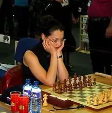 In August, she became the first Chess960 women's world champion after beating Germany's top female player Elisabeth Pähtz by 5½–2½. She defended that title successfully in 2008 by beating Kateryna Lahno 2½–1½.[13] However, her greatest success so far has been to win the Women's World Chess Championship 2008, beating in the final the young Chinese prodigy Hou Yifan with a score of 2½–1½.[14][15] Later in the same year, she won the women's individual blitz event of the 2008 World Mind Sports Games in Beijing.[16]