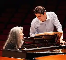 Kapelis came to the attention of Martha Argerich in New York in 2003.[8] In 2007, he moved to Brussels—where Argerich lived at the time—and was mentored by the great pianist.[8] Argerich invited Kapelis to perform in the Progetto Martha Argerich, where he appeared on several editions from 2010 until the Festival's last iteration in 2015.[17] When Argerich was asked on Classica Magazine which pianists from the new generation she liked, Alexandros Kapelis was one of the few artists she cited, declaring that “Kapelis has no equal in Rachmaninoff but also plays the classics with astonishing taste”.[18] Kapelis has repeatedly expressed his profound admiration and gratitude towards Argerich, describing her as “a force of nature,” stating that “everything she plays seems to come out in a single breath, the emotion and the full power of the music, with no hesitation, no filtering.”[8]