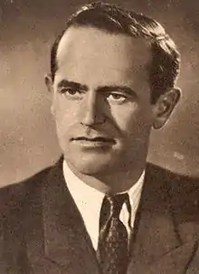 Moghioroș was born in 1911 into an ethnic Hungarian family, in Nagyszalonta, Austria-Hungary, now Salonta, Bihor County, Romania.[1] A worker who joined the Romanian Communist Party (PCR; later PMR) when it was banned, he was tried by the authorities of the Kingdom of Romania at Craiova alongside Ana Pauker and spent time in prison at Jilava, Doftana, and Caransebeș.[2] While in detention, he grew close to future leader Gheorghe Gheorghiu-Dej, becoming part of a nucleus that would later be at the party's forefront.[3] When Gheorghiu-Dej began, by 1950, to move to consolidate his undisputed leadership of the party, he named the trusted Moghioroș to stand guard over and watch for chauvinism in the activities of Vasile Luca, another high-ranking ethnic Hungarian targeted for purging.[4] He sat on the party's central committee (1945–1968), its political bureau (1948–1965) and its political executive committee or CPEx (1965–1968).[2] He was deputy prime minister during 1954 and from 1957 to 1965.[5][6][7][8] As the central committee's secretary for organizational matters during the 1950s, he was one of the architects of the Pauker–Vasile Luca group's fall in May–June 1952. He was the de facto overseer of cadre policy and was involved in the collectivization process.[2]