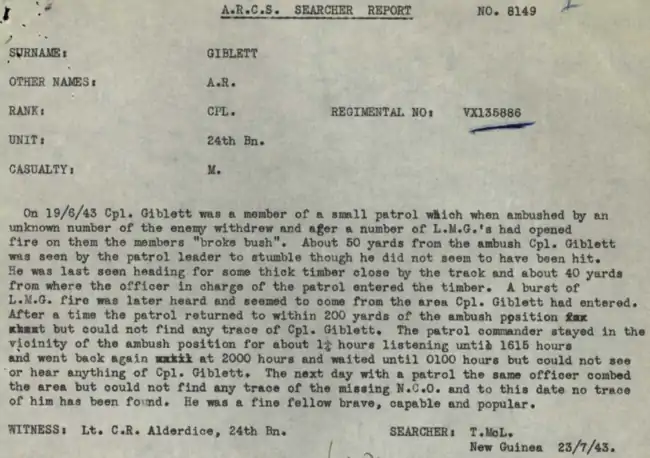 - Roll of Honour: Corporal Alfred Rowton Giblett (VX135886), Australian War Memorial.