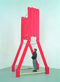 Alongside his creative work Giuffrida has devoted himself to set design for dance theatre ever since his days in Rome. The stage images he has created are characterized by light, transparency, movement and a lightness of touch. Typical features are large-scale objects without a fixed installation, like steel struts and frames that the dancers can move around in the space: the rhythm and variation of stage set and dance are mutually complementary. This allows the creation of ever-new spatial definitions and flexible images, in which the notion of the relativity of viewer and object through the movement in space or the movement of space itself in turn becomes the theme itself. From 1995 he has been set designer for, among others, Tanzforum Köln, Euregio Tanzforum, and Jochen Ulrich.