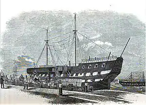 ![]() HMS Warrior as a prison ship. This image was published in 1862. | |