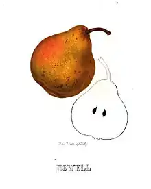 Following this, Hoffy began work with William D. Brincklé, a physician and amateur pomologist, on a new series of publications on native North American fruits, to be published under the general title North American Pomologist.[2] Individual volumes would be edited by Brincklé (who was for many years the vice-president of the Philadelphia Horticultural Society). Each was planned to have 36 pages of information on different kinds of fruit, illustrated with 10 color plates.[2][4] The illustrations were produced as stone lithographs drawn by Hoffy (signed "From Nature by A. Hoffy") and colored under his direction.[4] The fruit is usually shown in a full-color side view, sometimes accompanied by a simple black outline of the fruit's profile.