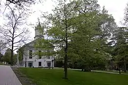 Alfred University was once associated with the Seventh Day Baptist Church, until 1945 all presidents were admitted from among the seventh day Baptists,[8] and had a school of theology. Formerly the campus chapel, Alumni Hall is now used primarily to house the Admissions and Financial Aid Departments, and has a place on the National Register of Historic Places. In the 1990s, Alumni Hall was preserved through a restoration effort.
