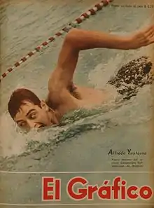 Alfredo Yantorno (June 8, 1924 - July 28, 1963) was an Argentine swimmer who competed at the 1948 Summer Olympics and the 1952 Summer Olympics. He was the flag bearer for Argentina at the 1948 Summer Olympics during the opening ceremony, where he reached the final of the 400 m freestyle finishing 8th.[1]