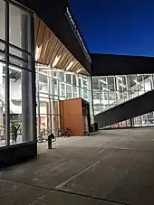The purpose of this significant renovation is to improve the campus library and to provide a range of collaborative spaces for students, staff, and faculty to grow and learn. The new building has been called the DARE District with DARE standing for Discovery, Applied Research, and Entrepreneurship. The DARE District also holds the new Institute for Indigenous Entrepreneurship, which provides Indigenous Algonquin College students and alumni a collaborative space to access resources they need in order to develop or create businesses. This renovation has contributed to the environmental sustainability of the college's research and innovation infrastructure by transforming the northern wing of C building to a high-performance green building. [8]