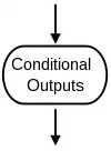 Conditional Output Box: An oval denotes the output signals that are of Mealy type. These outputs depend not only on the state but also the inputs to the FSM.