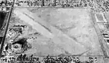 Alhambra Airport also called the Western Air College Airport was an airport in Alhambra, California from 1928 to 1946. The Airport was founded by the Western Air Express on 157-acre of land. The airport had a single 2,830-foot asphalt northeast–southwest runway. The Western Air Express built a unique hangar, that was a 44-foot hexagonal shape able to work on 6 aircraft at once. Western Air Express also build an air terminal building and a conventional hangar. Western Air Express at the opening operated Fokker F-32 from the airport. Western Air Express held a large dedication ceremony on April 17, 1930 for the new air terminal.[1] The US Forest Service operated a patrol aircraft out of the airport to keep an eye out on the nearby San Gabriel Mountains. Just one year after the dedication ceremony, both Western Air Express and Transcontinental, which also had flights out of the airport, moved to the Burbank Airport and Glendale Grand Central Airport. With no scheduled flights, the Alhambra Airport became a private airport. A Western Air College flight school opened at the airport and some other small commercial operations. With Hollywood only 15 miles away the Alhambra Airport became a popular spot to shoot movies. The 1936 movie 13 Hours by Air directed by Mitchell Leisen and starring Fred MacMurray and Joan Bennett was shot at the airport.[2] In 1939 the film Danger Flight was shot at the airport, directed by Howard Bretherton, starring John Trent as Tailspin Tommy Tompkins, Marjorie Reynolds, Milburn Stone and Jason Robards Sr.[3] The film featured young aviation enthusiasts in a model club.[4] The four-seat cabin monoplane, Harlow PJC-2 designed by Max B. Harlow was built at the Alhambra Airport in 1937.[5][6] To support the build-up of the World War 2 effort, the Alhambra Airport was used as a depot for Lockheed Corporation military airplanes, many P-38 Lightning fighters aircraft came, were packed and departed the depot on the Lend Lease Program.[7][8] In 1941 the Flying Wild and They Met in Bombay were shot at the airport.[9] In 1942 the movie Flight Lieutenant was shot at the airport.[10] In 1943 the airport was sold to the city. Harlow Aircraft Company purchased the airport in 1945. Harlow Aircraft Company had been building small aircraft at the airport since 1936 in small qualities.[11][12] In 1946 Harlow Aircraft Company sold the airport to real estate developers, the north part of the site is now commercial property and the remaining is houses. The Airport was located at what is now Valley Boulevard to the north, New Ave to the east, Almansor Street to the west and the Interstate 10 to the south. Western Air Express later became part of Western Airlines. Western Air College Airport also operated out of the Rosemead Airport for some years. Western Air Express operated out of the Vail Airport in Montebello before moving its operation to the Alhambra Airport.[13][14][15]
