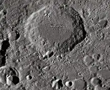 Aliacensis is a lunar impact crater that is located in the rugged southern highlands of the Moon. The crater Werner is located just to its north-northwest, and a narrow, rugged valley lies between the two comparably sized formations. To the southwest is Walther, and Apianus is to the northeast. Aliacensis is named after the 14th century French geographer and theologian Pierre d'Ailly in 1935.[1][2] It is from the Nectarian period, which lasted from 3.92 to 3.85 billion years ago.[3]
