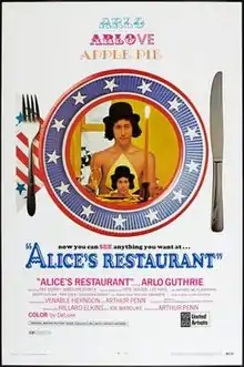 Alice's Restaurant is a 1969 American comedy film directed by Arthur Penn. It is an adaptation of the 1967 folk song "Alice's Restaurant Massacree", originally written and sung by Arlo Guthrie. The film stars Guthrie as himself, with Pat Quinn as Alice Brock and James Broderick as Ray Brock. Penn, who resided in the story's setting of Stockbridge, Massachusetts, co-wrote the screenplay in 1967 with Venable Herndon after hearing the song, shortly after directing Bonnie & Clyde.[3]